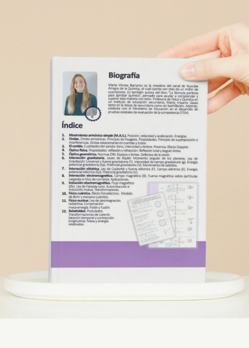 En este libro encontrarás la teoría del curso de 2º de bachillerato de física de una manera fácil de comprender, con múltiples esquemas y dibujos y acompañada de una cuidadosa selección de más de 250 problemas de acceso a la universidad (Selectividad, EvAU o EBAU) de todas las comunidades autónomas. Todos los problemas se encuentran resueltos por Marta paso a paso, quien además los acompaña de anotaciones y trucos.
